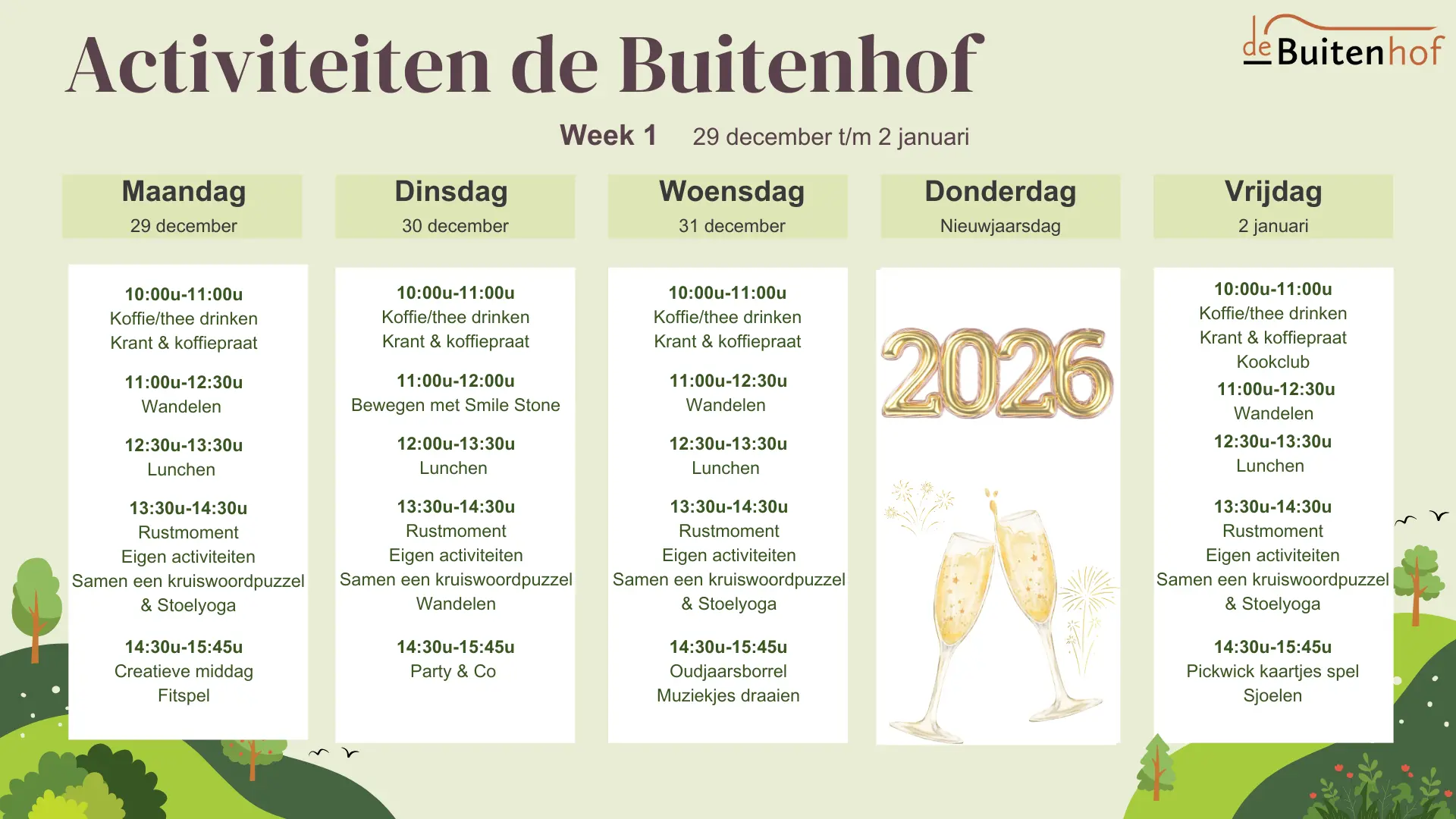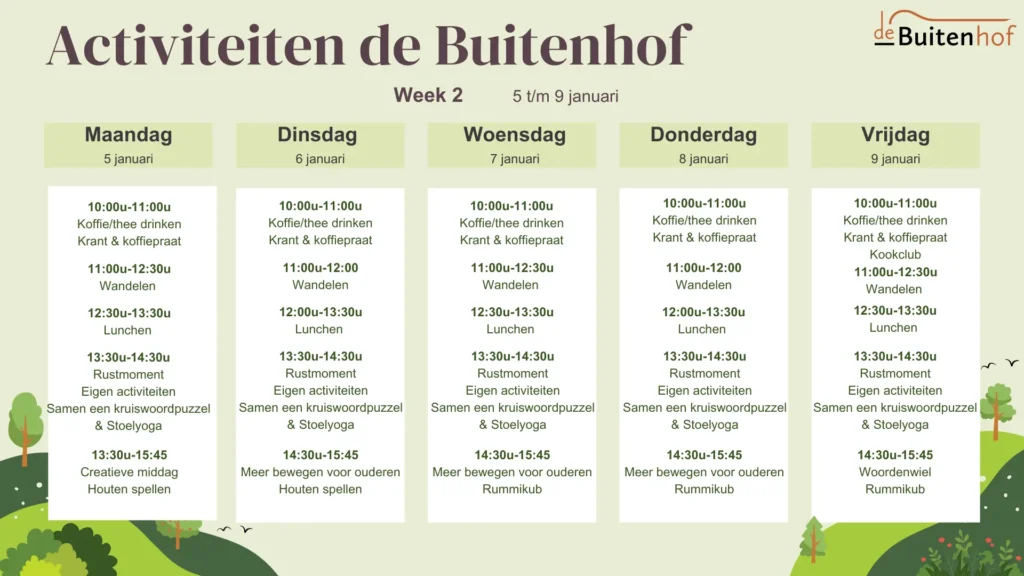 Door de weersomstandigheden is de Buitenhof van 6 t/m 9 januari 2026 gesloten geweest.