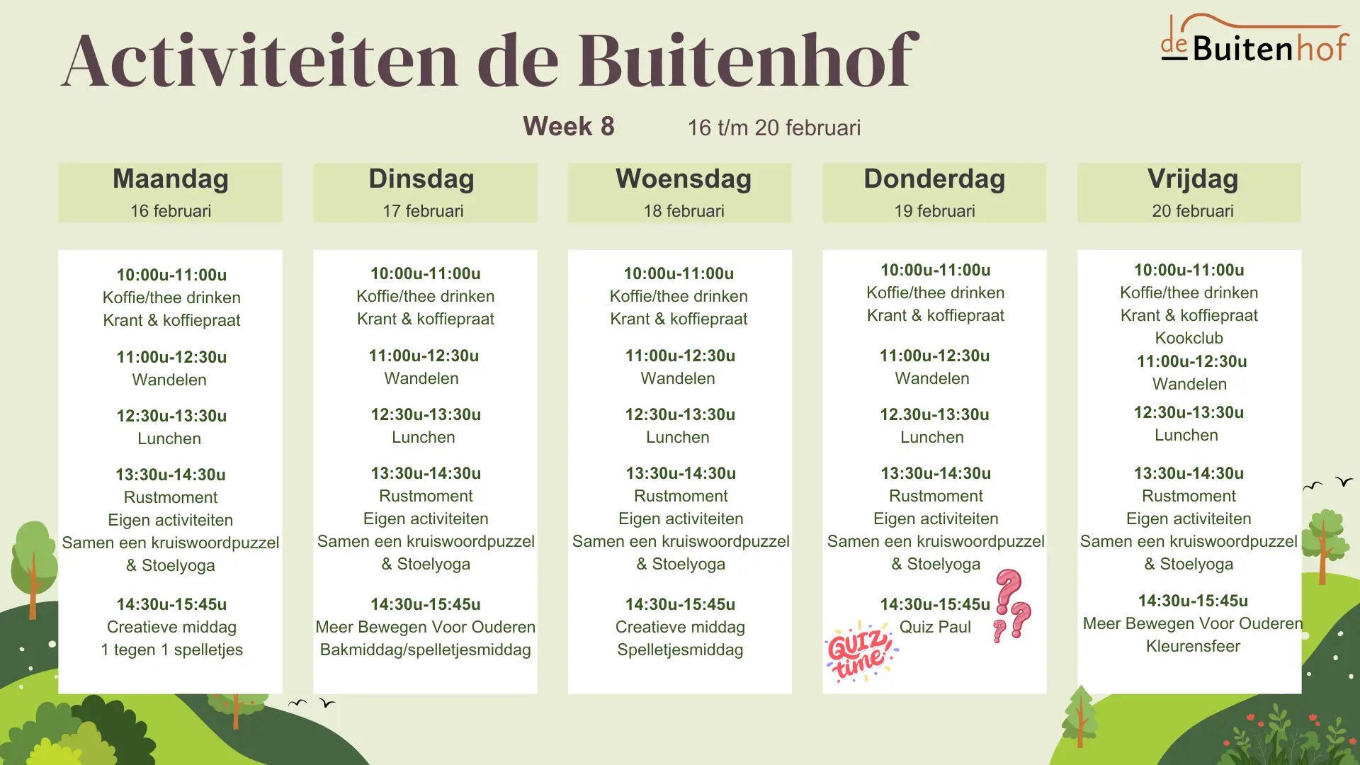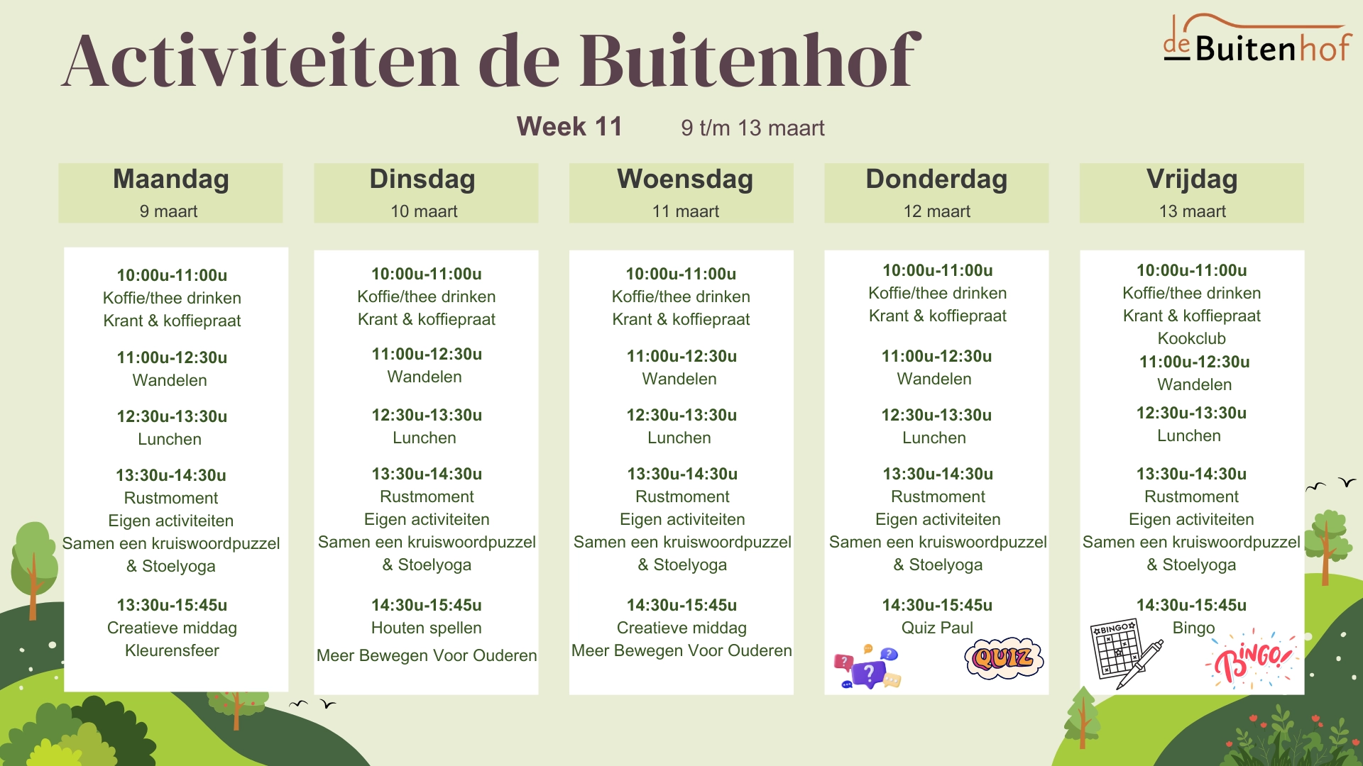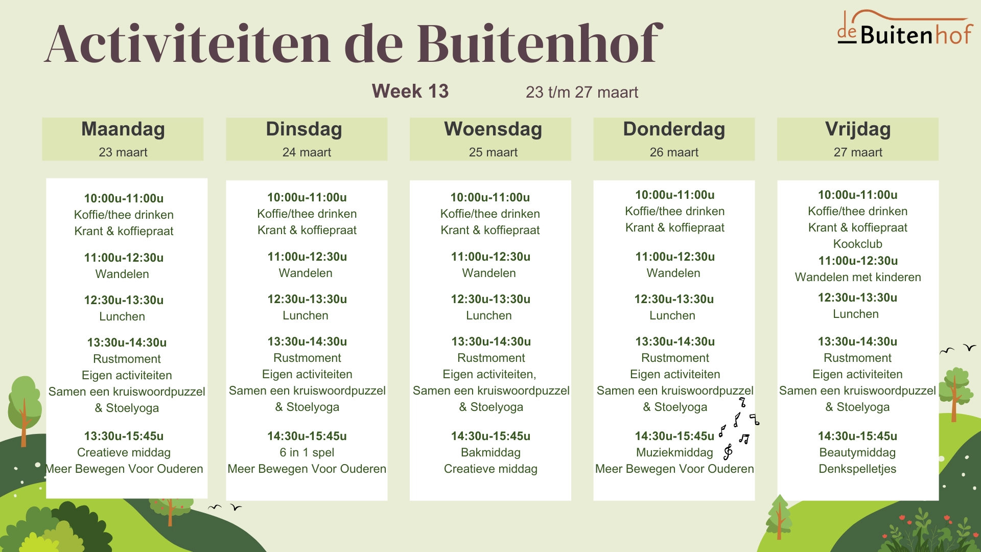 Wilt u de planning zien van een week, die meer dan 1 week geleden is, ga dan naar Archief weekplanningen